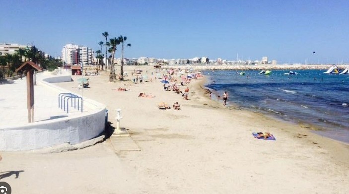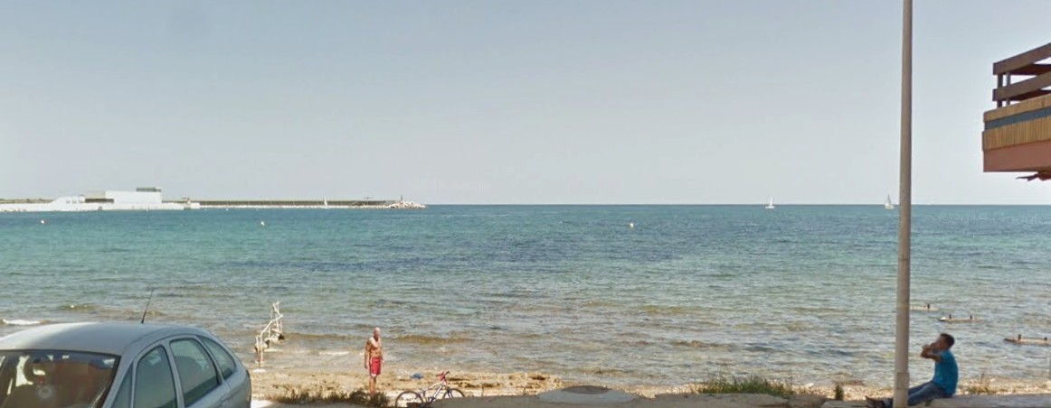 Ubicado en Torrevieja, Alicante, en calle Desiderio Rodríguez, 19, con vista lateral a la playa de Los Náufragos.