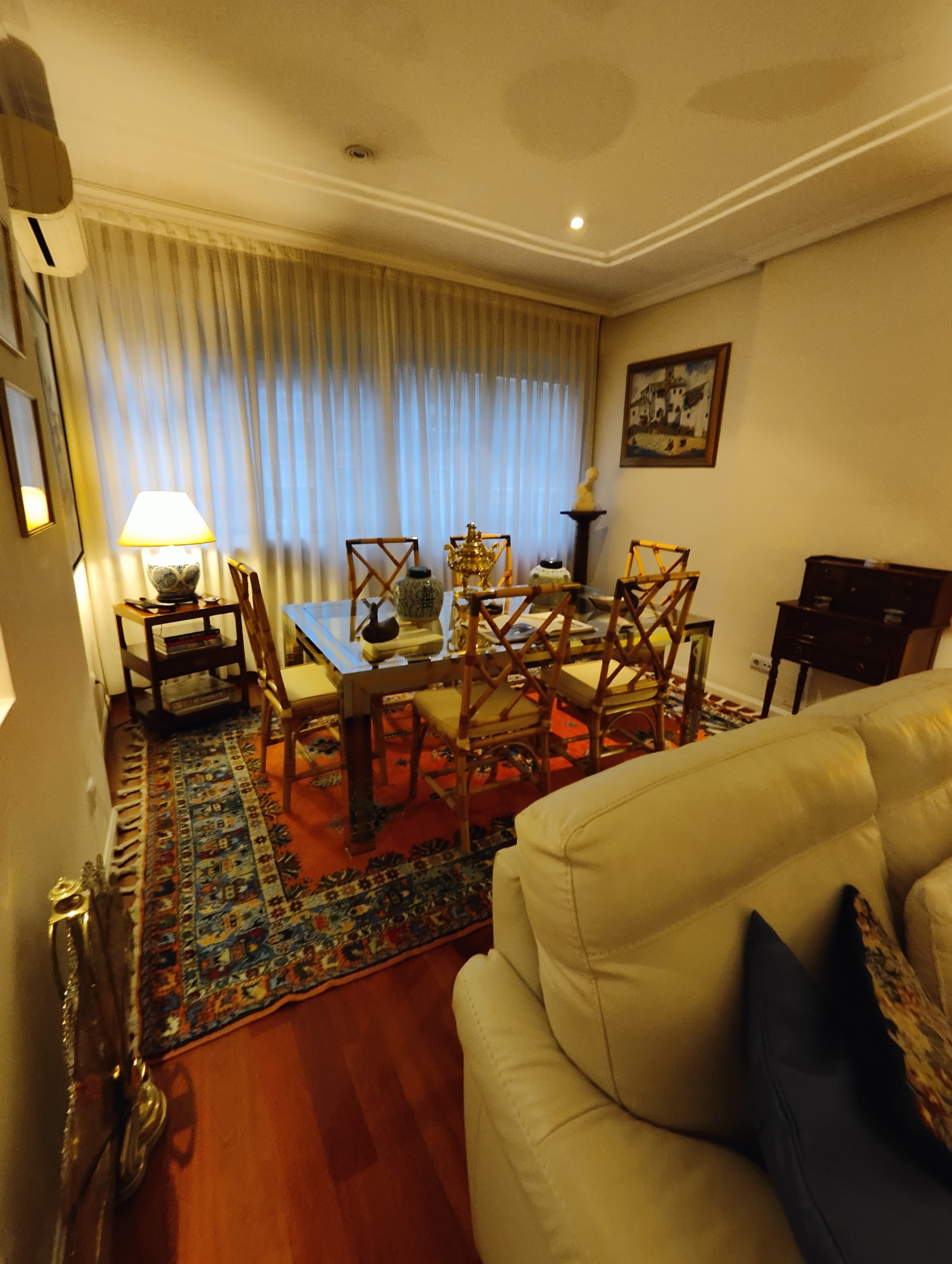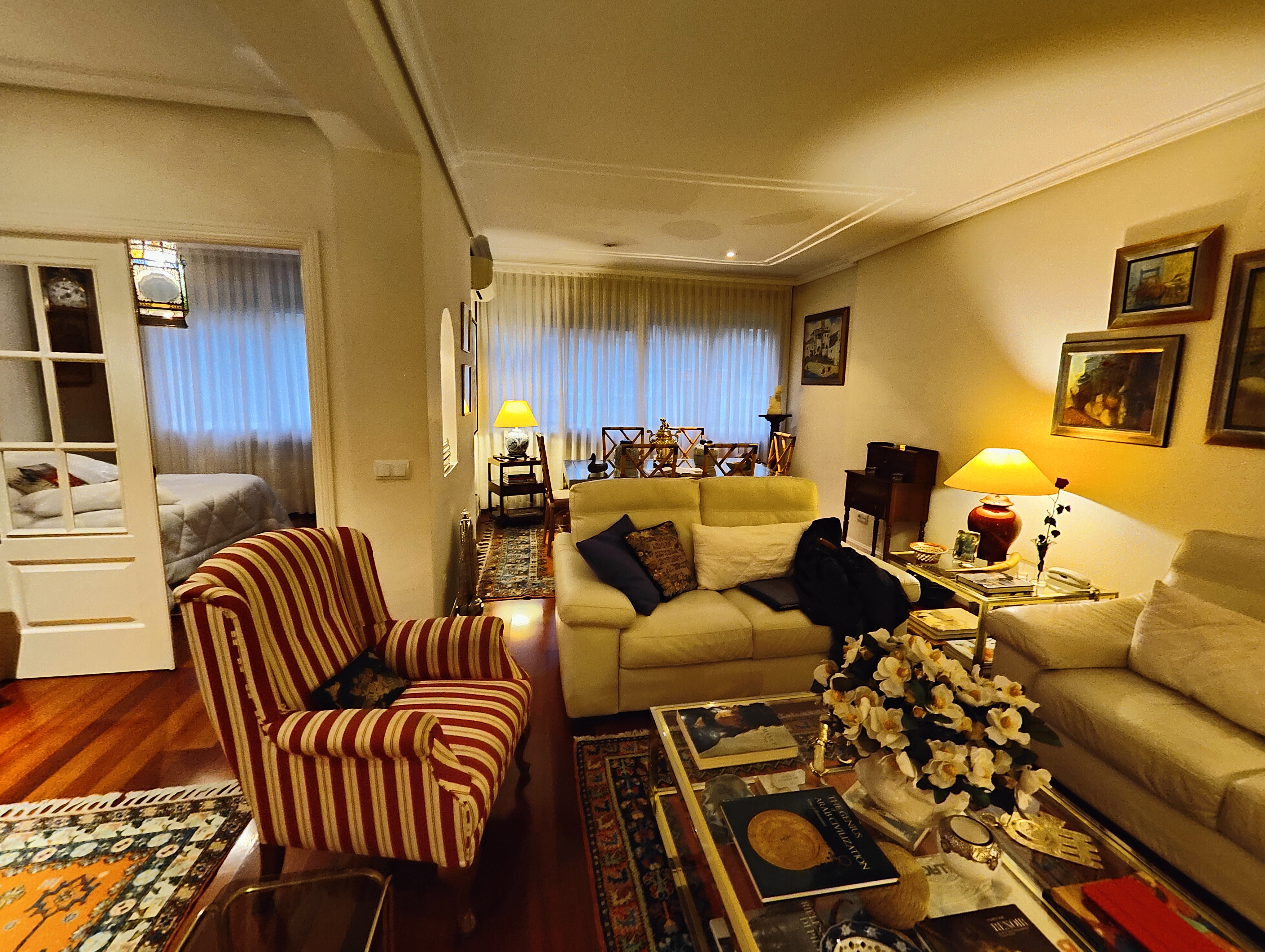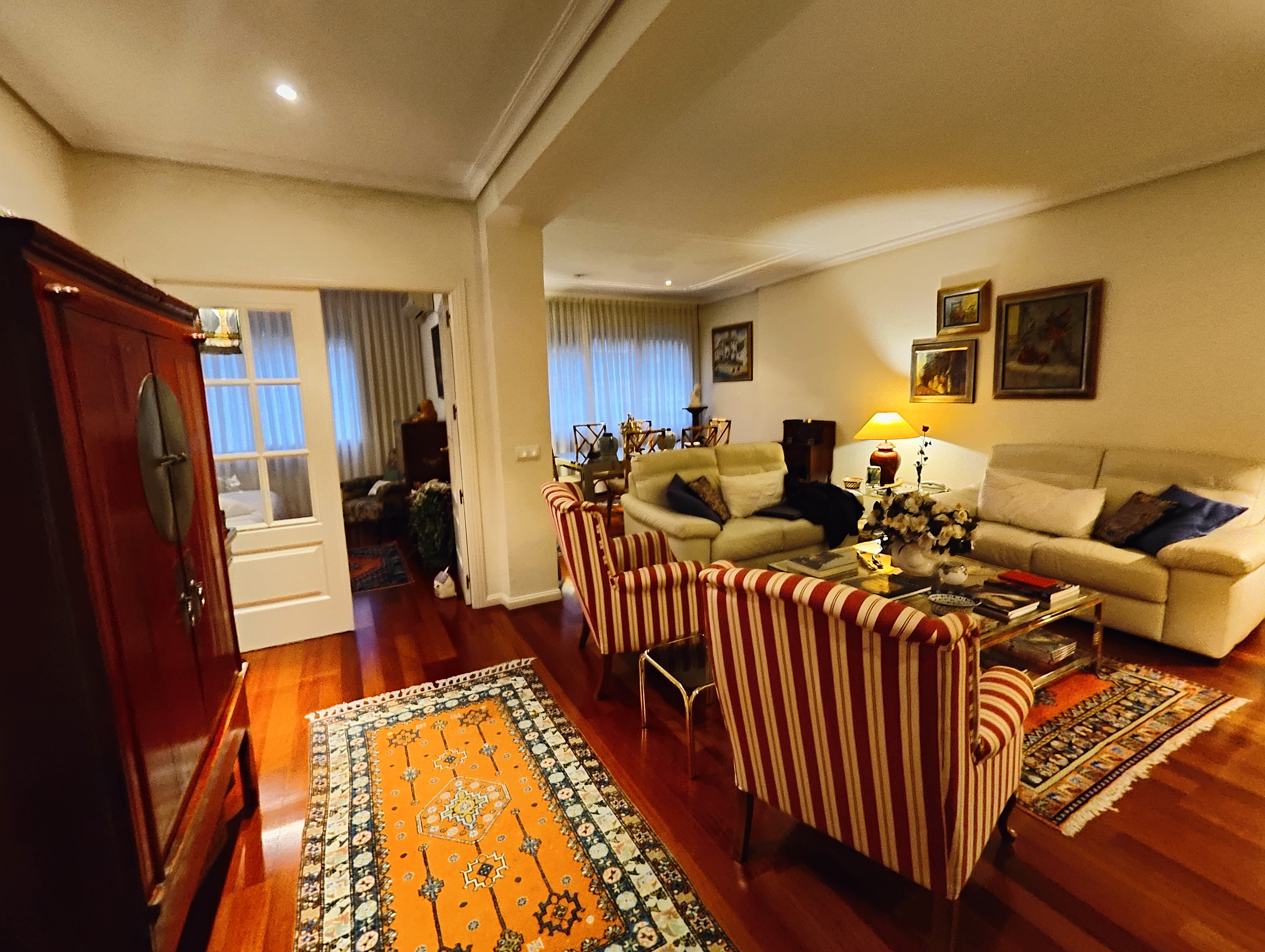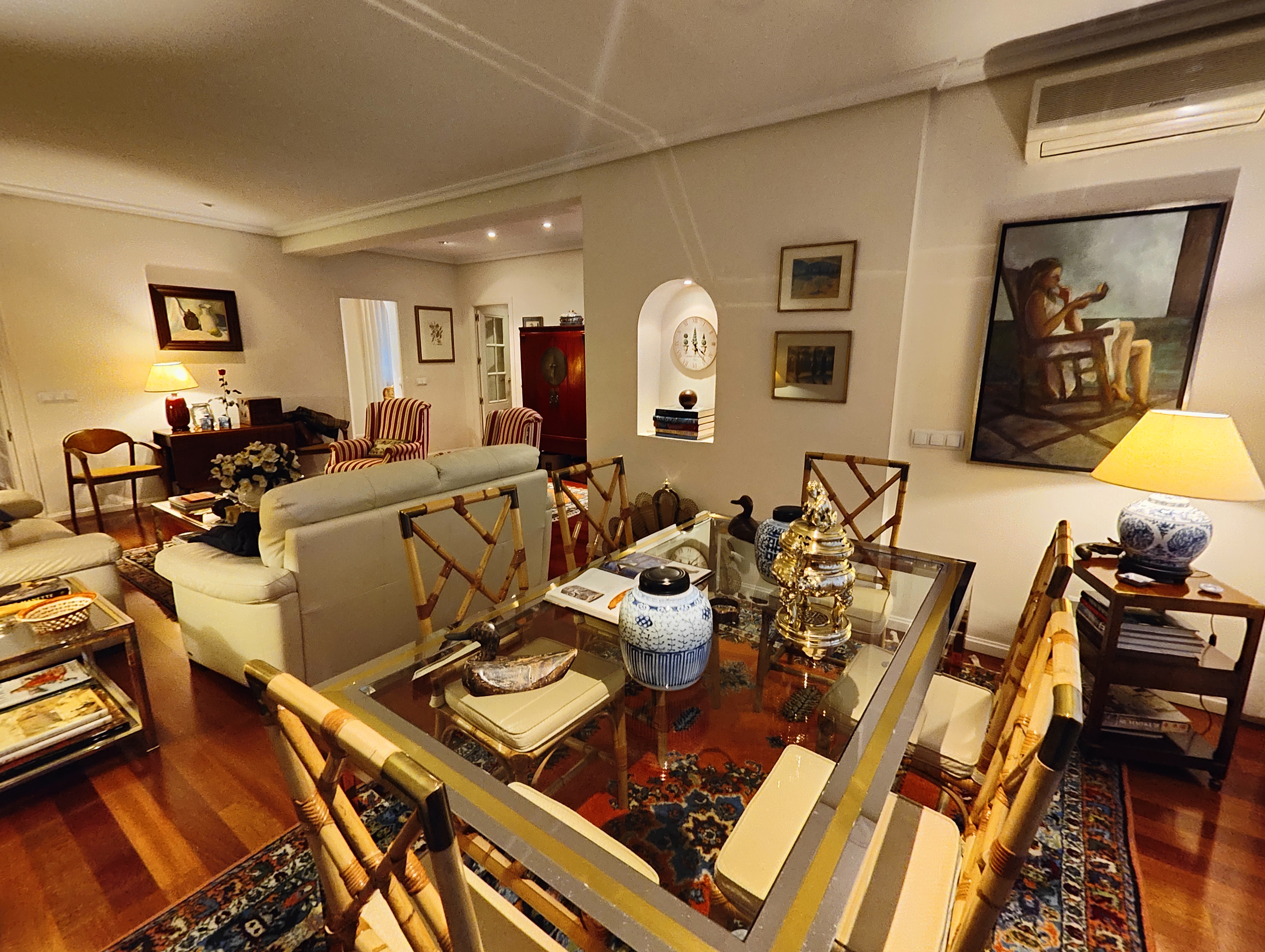 Vivienda reformada integralmente, con estado de conservación actualizado. Dispone de hall de entrada con vestidor, salón de gran tamaño ampliado mediante cerramiento de terraza, tres dormitorios (uno en suite con baño completo), segundo baño con ducha, zona de office y cocina independiente en forma de L. Una de las habitaciones se utiliza como despacho. La vivienda cuenta con numerosos armarios empotrados distribuidos en varias estancias. Es exterior a jardín comunitario, con buena entrada de luz natural. Dispone de carpintería exterior de aluminio lacado con doble acristalamiento y rotura de puente térmico, suelos de madera y techos de altura superior a 2,6 metros. Cuenta con calefacción central por fueloil con agua caliente incluida y aire acondicionado en salón y dormitorios. Dispone de doble acceso con puertas acorazadas. Edificio con portero físico residente. Existe garaje en la finca, no incluido en la venta.