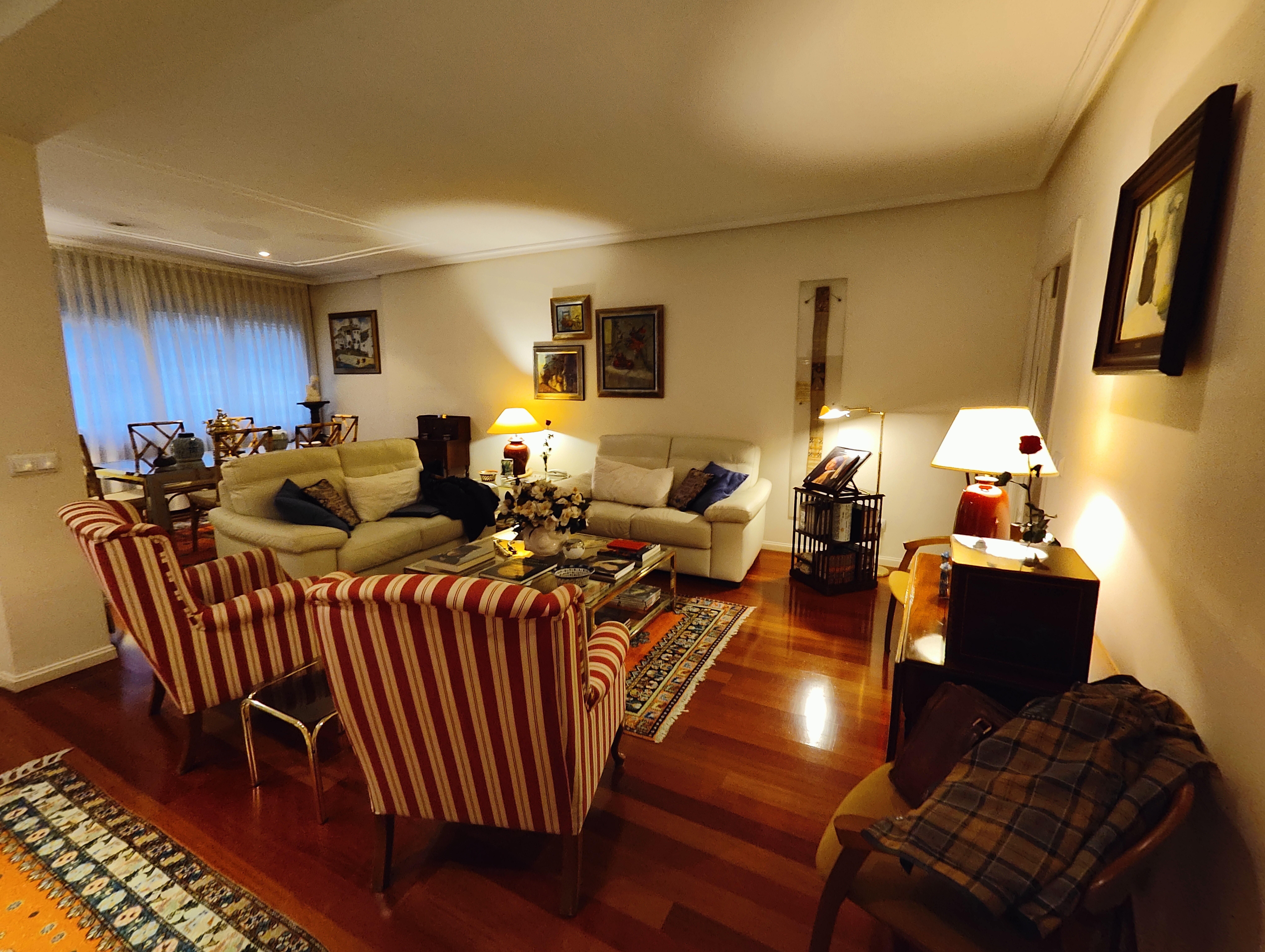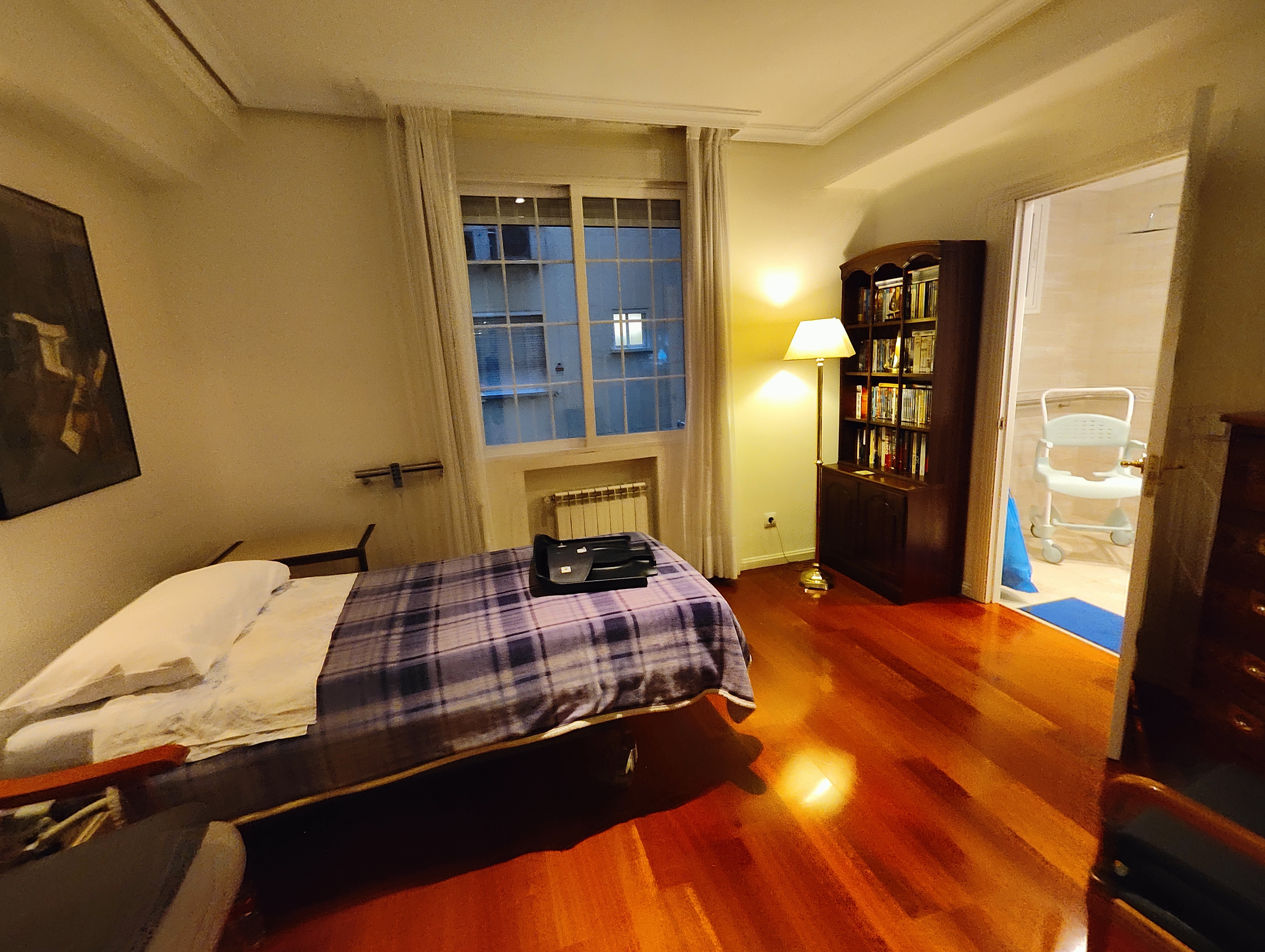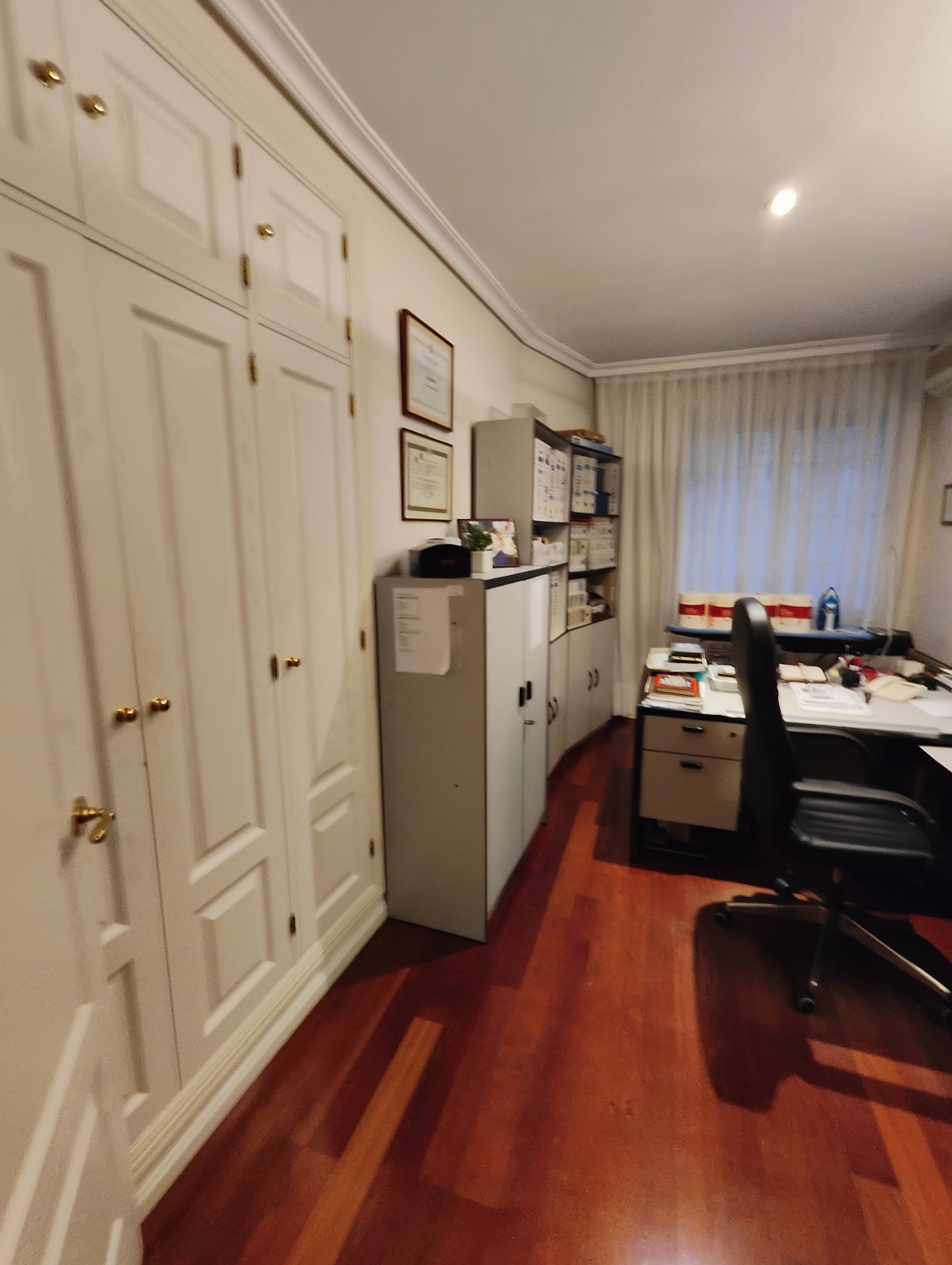 Vivienda reformada integralmente, con estado de conservación actualizado. Dispone de hall de entrada con vestidor, salón de gran tamaño ampliado mediante cerramiento de terraza, tres dormitorios (uno en suite con baño completo), segundo baño con ducha, zona de office y cocina independiente en forma de L. Una de las habitaciones se utiliza como despacho. La vivienda cuenta con numerosos armarios empotrados distribuidos en varias estancias. Es exterior a jardín comunitario, con buena entrada de luz natural. Dispone de carpintería exterior de aluminio lacado con doble acristalamiento y rotura de puente térmico, suelos de madera y techos de altura superior a 2,6 metros. Cuenta con calefacción central por fueloil con agua caliente incluida y aire acondicionado en salón y dormitorios. Dispone de doble acceso con puertas acorazadas. Edificio con portero físico residente. Existe garaje en la finca, no incluido en la venta.