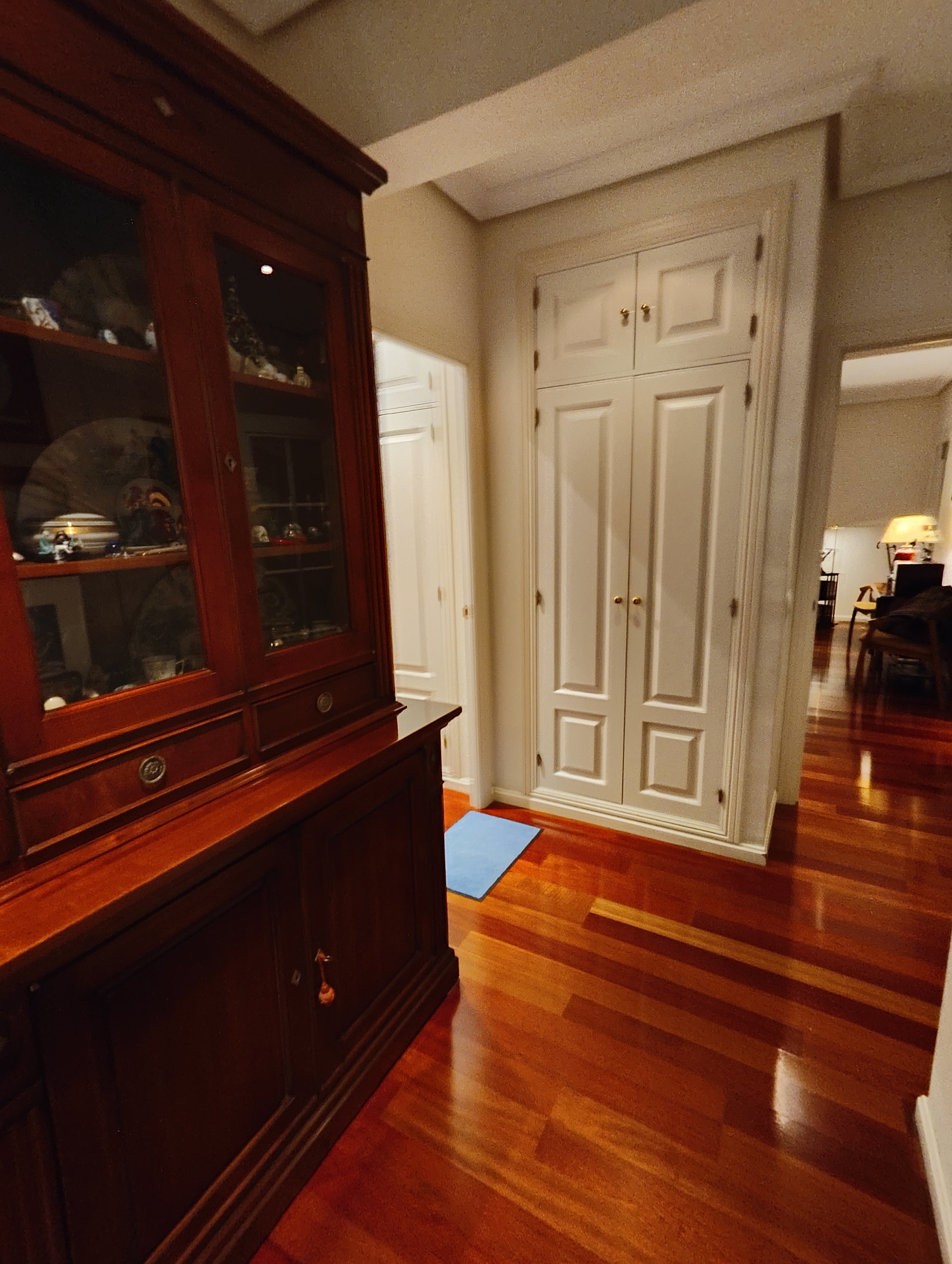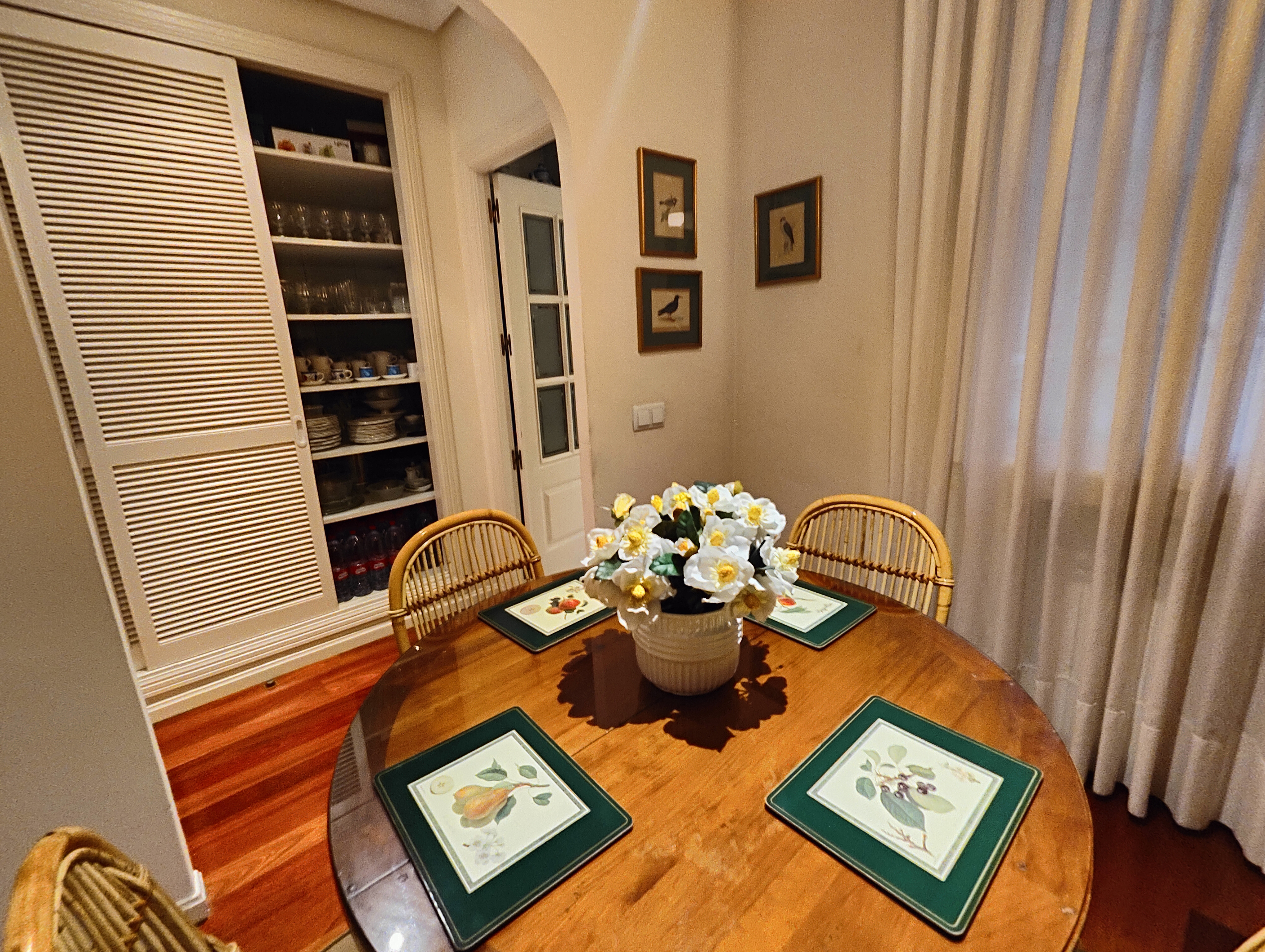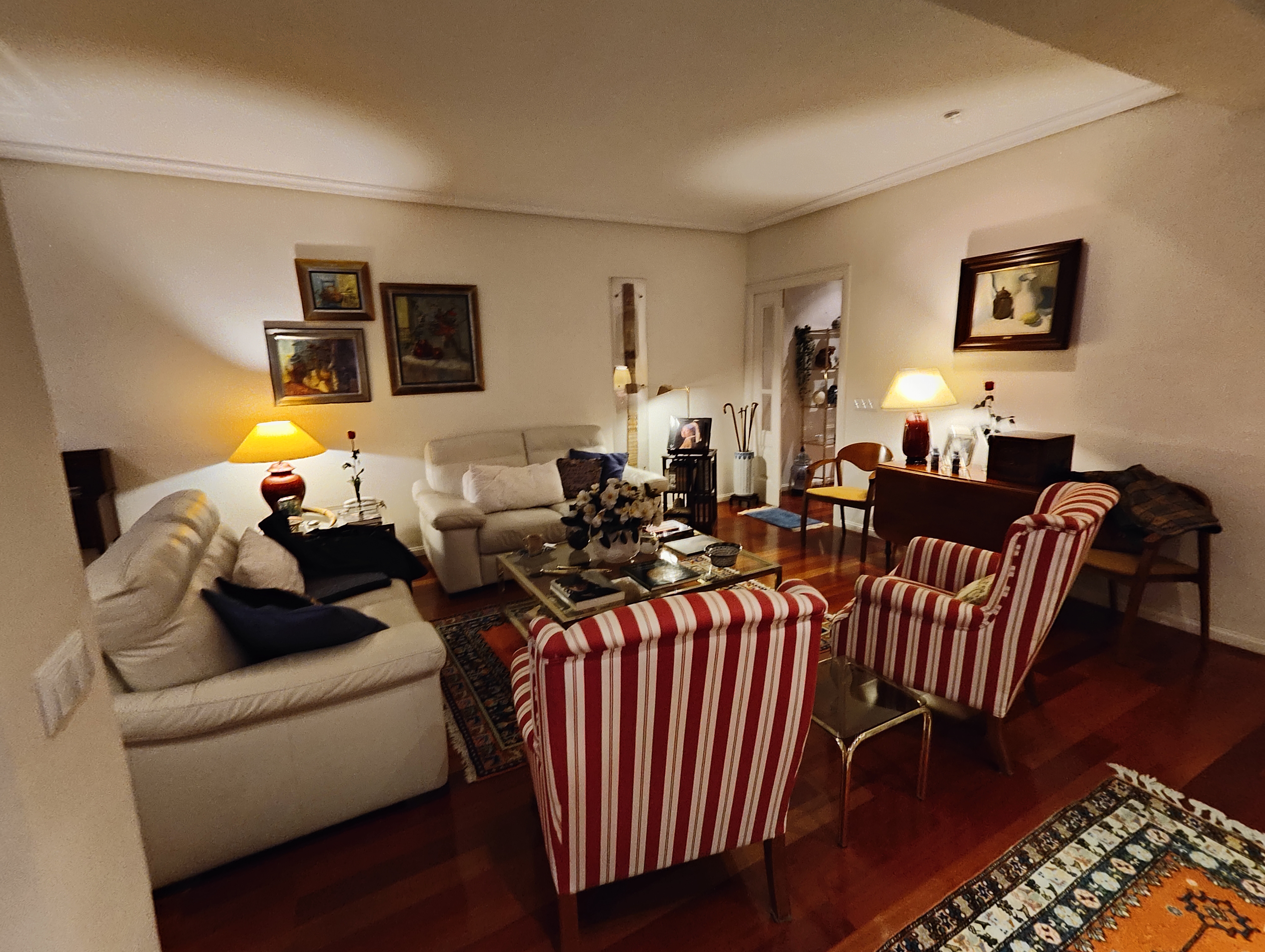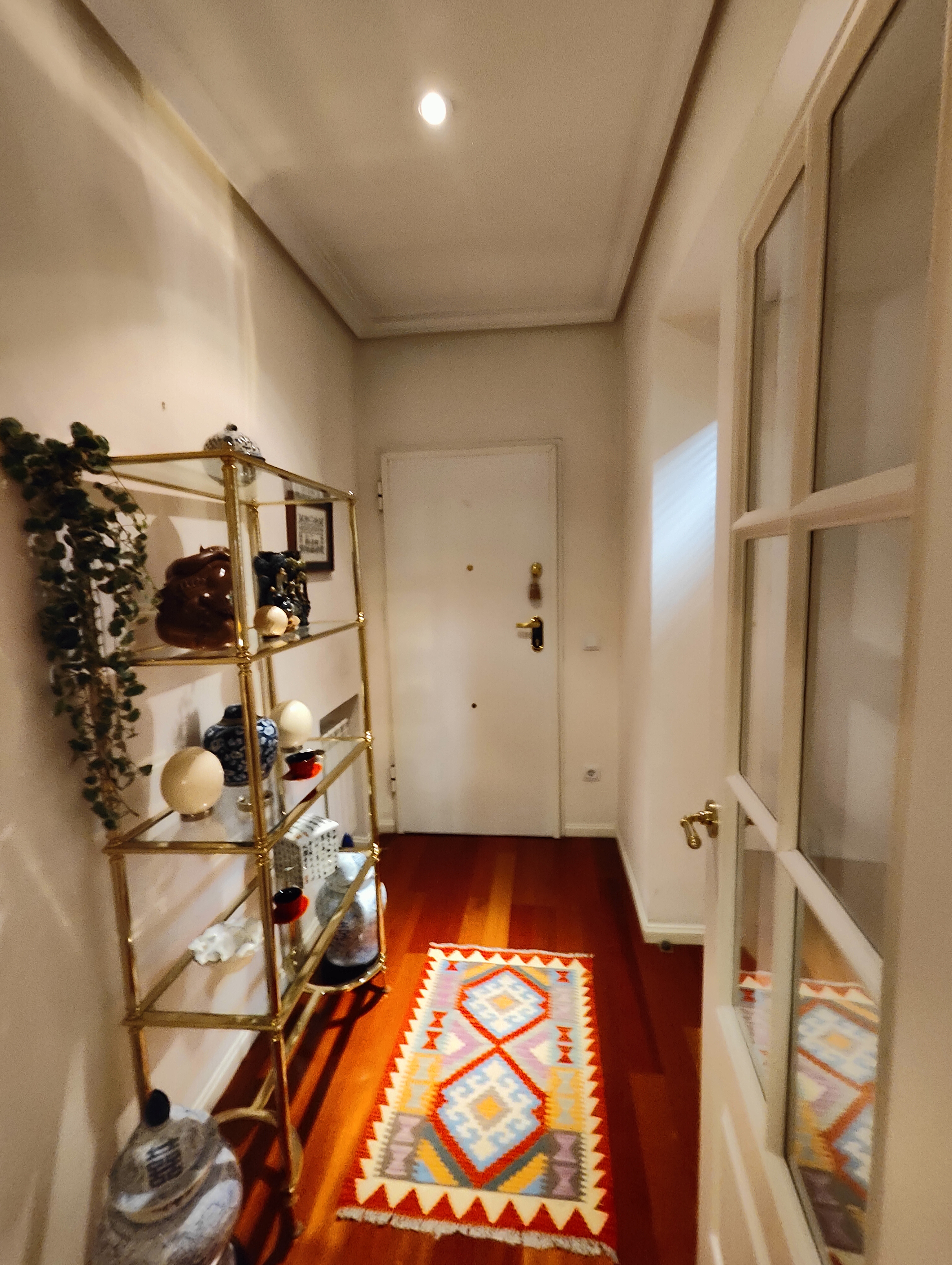 Vivienda reformada integralmente, con estado de conservación actualizado. Dispone de hall de entrada con vestidor, salón de gran tamaño ampliado mediante cerramiento de terraza, tres dormitorios (uno en suite con baño completo), segundo baño con ducha, zona de office y cocina independiente en forma de L. Una de las habitaciones se utiliza como despacho. La vivienda cuenta con numerosos armarios empotrados distribuidos en varias estancias. Es exterior a jardín comunitario, con buena entrada de luz natural. Dispone de carpintería exterior de aluminio lacado con doble acristalamiento y rotura de puente térmico, suelos de madera y techos de altura superior a 2,6 metros. Cuenta con calefacción central por fueloil con agua caliente incluida y aire acondicionado en salón y dormitorios. Dispone de doble acceso con puertas acorazadas. Edificio con portero físico residente. Existe garaje en la finca, no incluido en la venta.