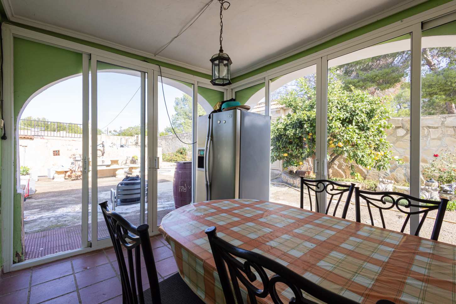 Porche acristalado con puertas correderas